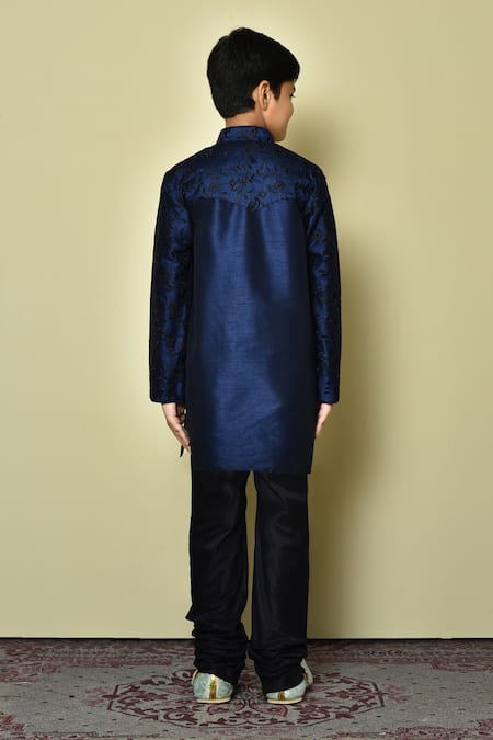 Navy blue dupion art silk kurta featuring embroidered paisley patterns