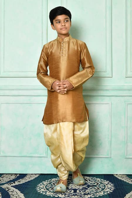 Buy_Petite Pomme_Brown Silk Pearls, Embroidery Buttoned Kurta With Dhoti Pant _Online_at_Aza_Fashions