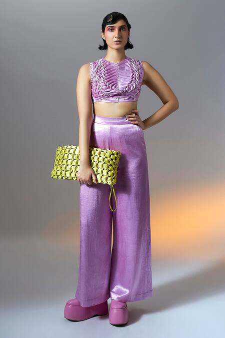 Buy_Aroka_Purple Velvet Elsa High Waisted Pant_at_Aza_Fashions