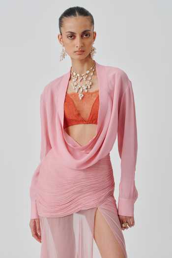 Pink Crepe Cowl Neck Rosaria Top