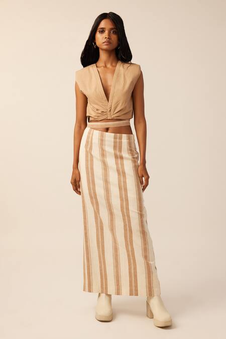 Beige Poplin Plain V Neck Sunkissed Sands Draped Crop Top