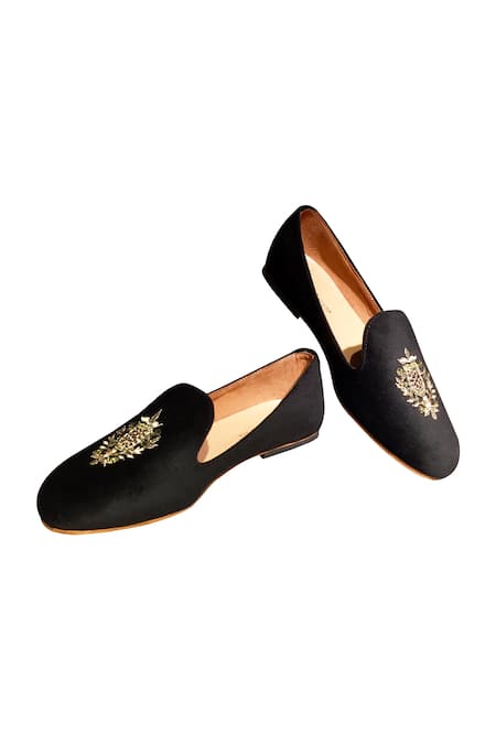 Buy_Artimen_Black Embroidered Velvet Handcrafted Loafers _at_Aza_Fashions