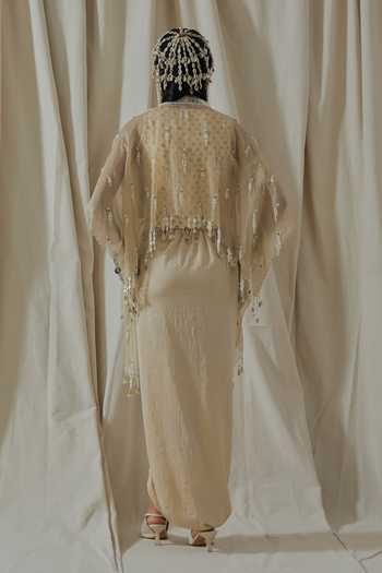 White Satin, Net Beads, Pearls, Mirrors, Tassels Square Bhumi Embroidered Corset