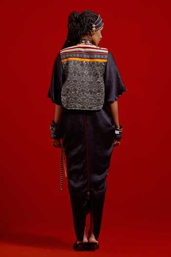 Black Tussar, Cotton, Silk Embroidery, Beads, Tassels Zuri Gilet With Dress