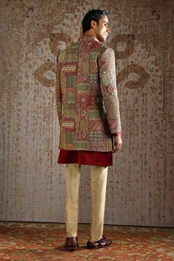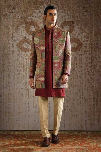 Patchwork-style embroidery, Long sherwani jacket silhouette