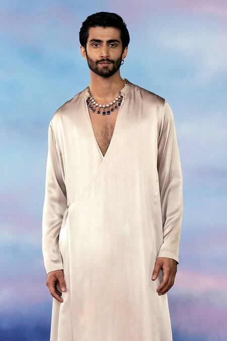 Gold Satin Asymmetric Hem Wrap Kurta Set