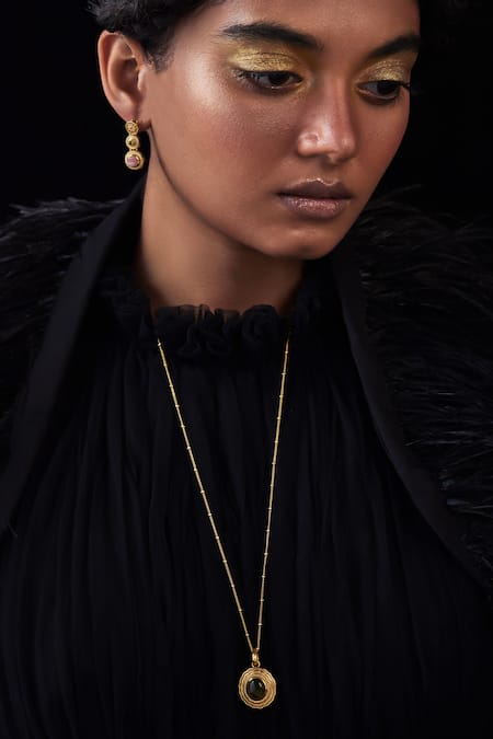 Buy_Aulerth X JJ Valaya_Green Sleek Geometric Stone Embellished Necklace _Online_at_Aza_Fashions