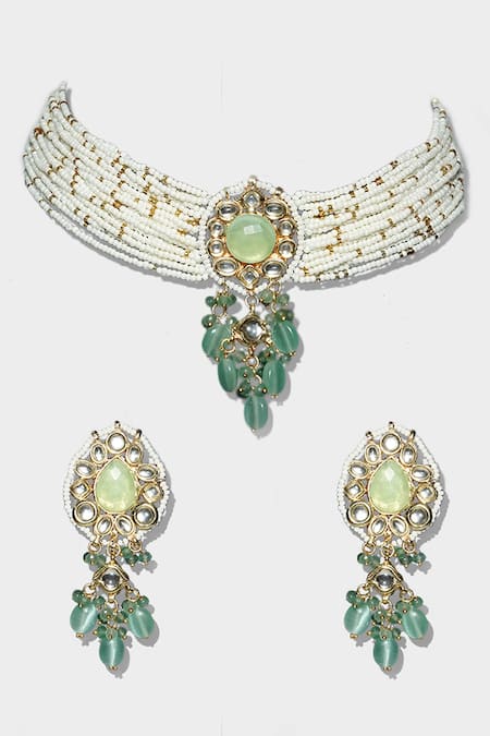 Buy_Auraa Trends_Gold Plated Beads Drop Choker Set _at_Aza_Fashions