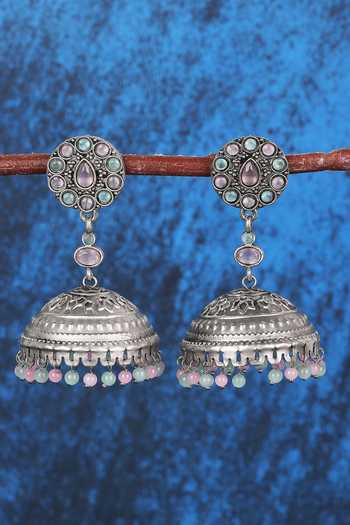 Silver Plated Stones, Beads Floral Jhumkas