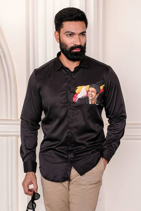 Black Cotton Blend Appu Hand Paint Shirt