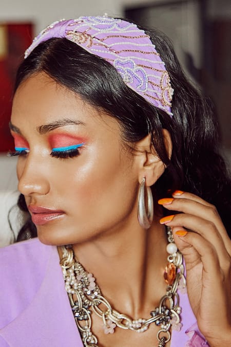 Purple Beads, Sequins Embellished Turban-style Headband
