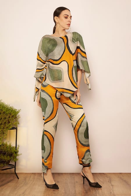 Buy_Babita Malkani_Ivory Satin Round Neck Ripple Dream Print Poncho Top _at_Aza_Fashions