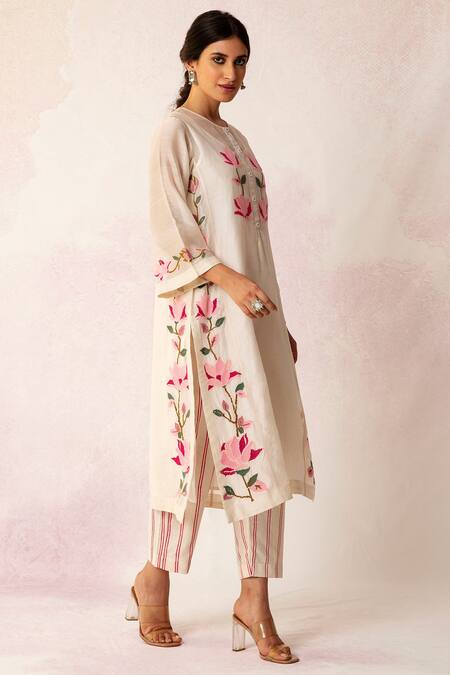 Shivani Bhargava White Cotton Stripe Bahaar Pattern Straight Pant