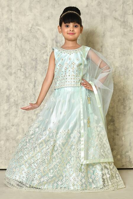 Green Net Sequins Geometric Cluster Embroidered Lehenga Set