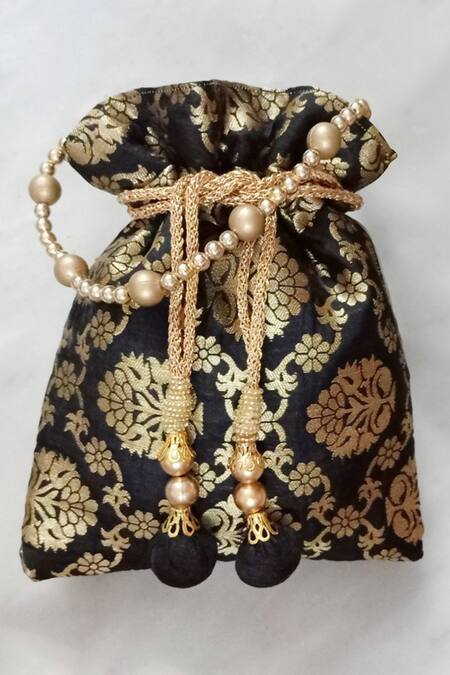 Black Banarasi Silk Potli Bag