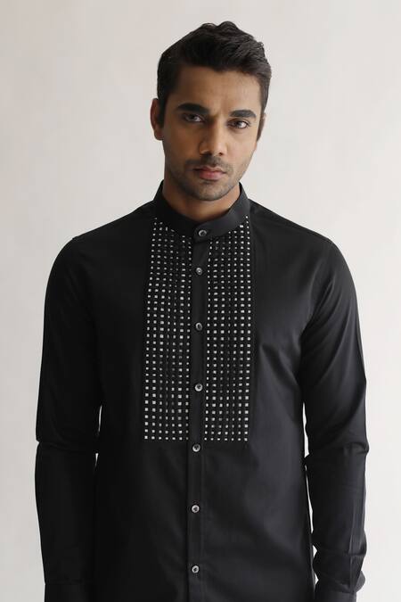 Black shirt featuring a band collar and full sleeves
