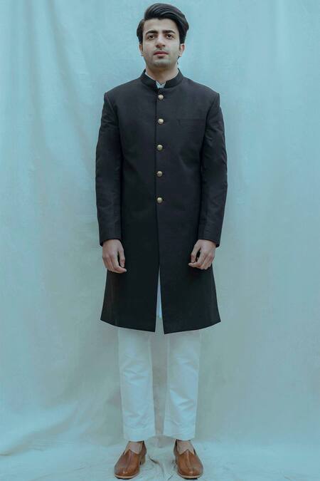 Black Bandhgala Suiting Kurta Poplin Pants Cotton Linen Set
