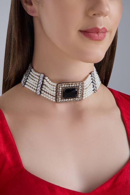Buy_Nepra By Neha Goel_Silver Plated Bead Choker_at_Aza_Fashions