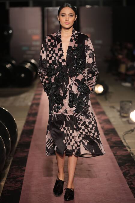 Pink & black blazer style dress with bead & sequin embroidery.