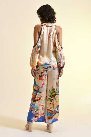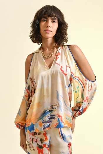 Multicolor blouse with cold-shoulder sleeves and coastal print. Made in viscose.