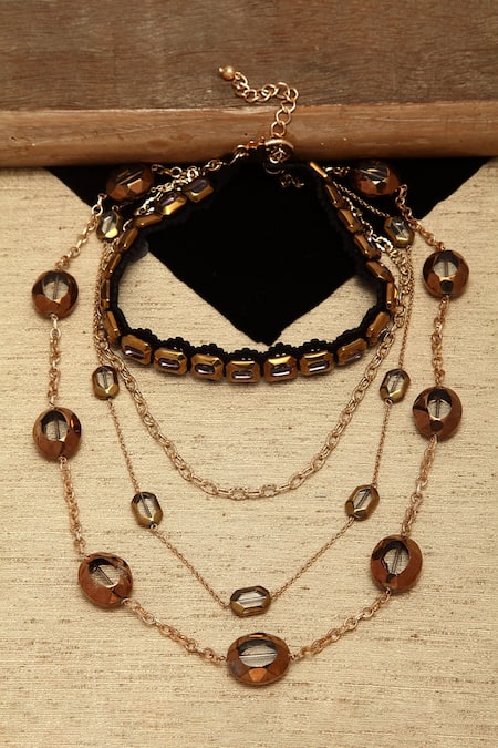 Multi-layered design with stone embellishments, Decorative choker style top, Gold-toned alloy chains