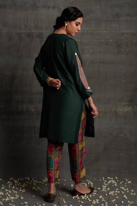 Green Silk Embroidery Round Neck Nayaab Kurta And Pant Set