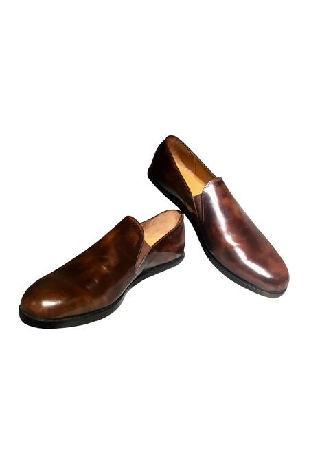 Brown slip on ombre pattern handcrafted loafers crafted in leather. Comes with a satin shoe bag.