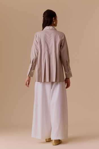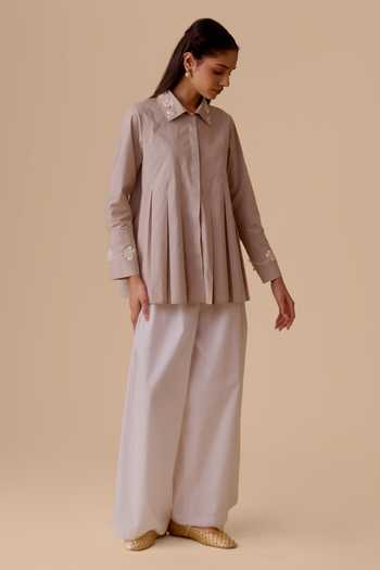 Pink Cotton Embroidery Collared Poplin Shirt