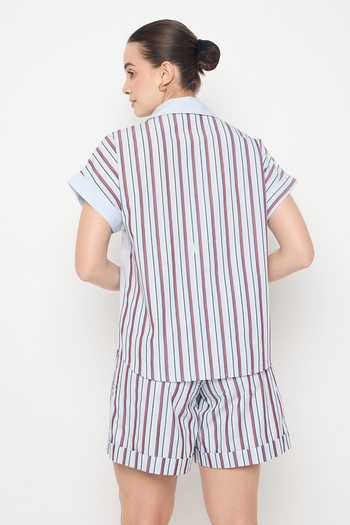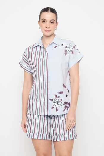Blue Cotton, Poplin Embroidery Collared Melisa Striped Shirt