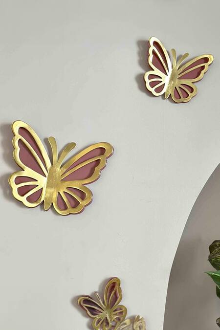 Pink Iron Butterfly Wall Motif - Set Of 3