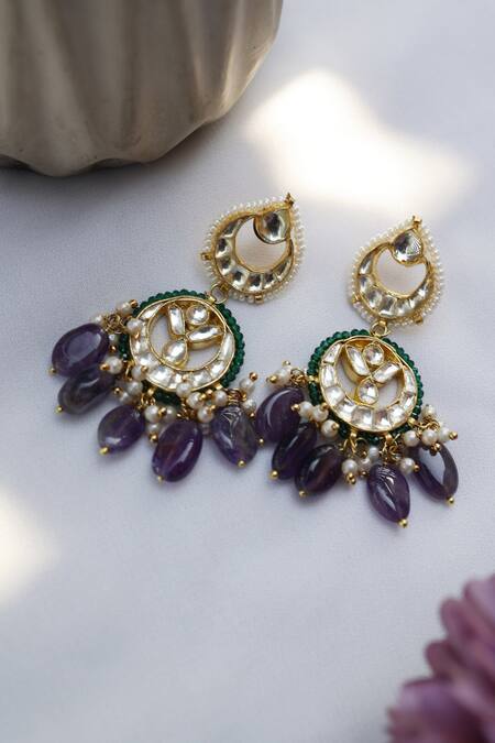 Purple Kundan Chandbali Earrings