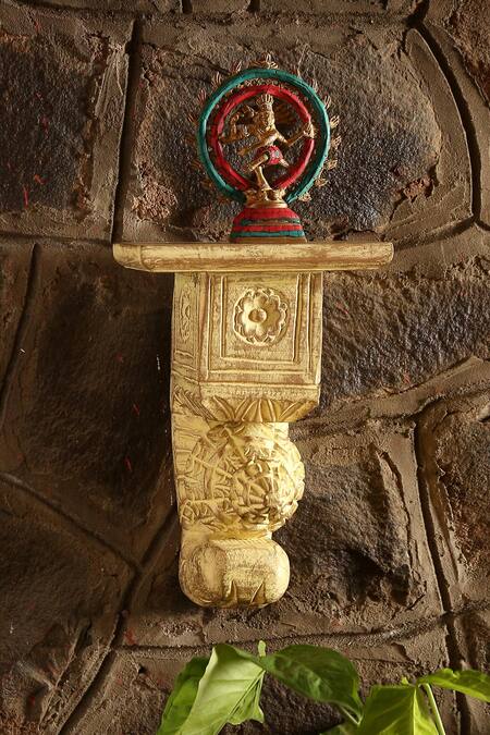Gold Mango Wood Carved Wall Shelf