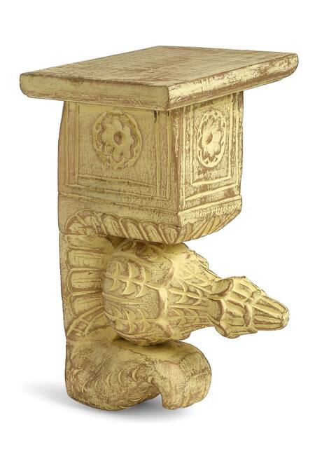 Yellow hand carved wall shelf with antique gold finish.