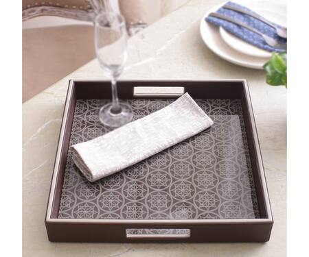 The elegant & artistic design of this stunning piece makes it a truly ornate addition for any living space. It's delicate handcrafted pattern on glass makes it stand out. Works well as a serving tray or as a accent piece.