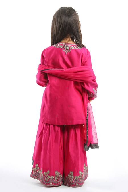Fuchsia Chanderi Embroidered Floral Angrakha Sharara Set
