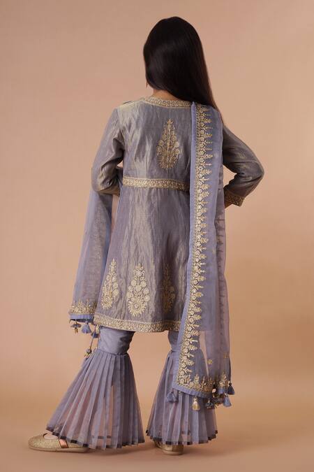 Buy_Rar Studio - Kids_Grey Chanderi, Cotton Embroidery Kurta Sharara Set_at_Aza_Fashions