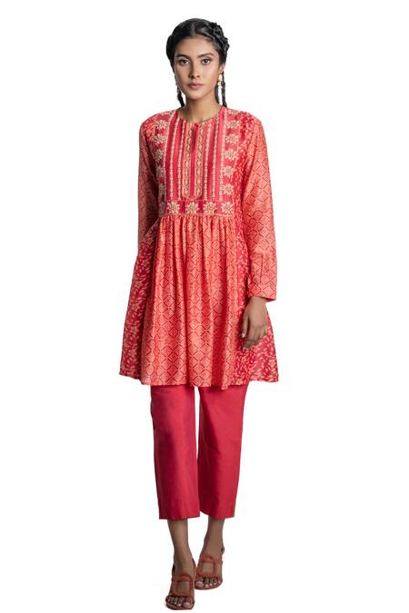 Buy_Krishna Mehta_Pink Kurta Chanderi And Pant Viscose Cotton Block Print & Thread Tunic & Set_Online_at_Aza_Fashions
