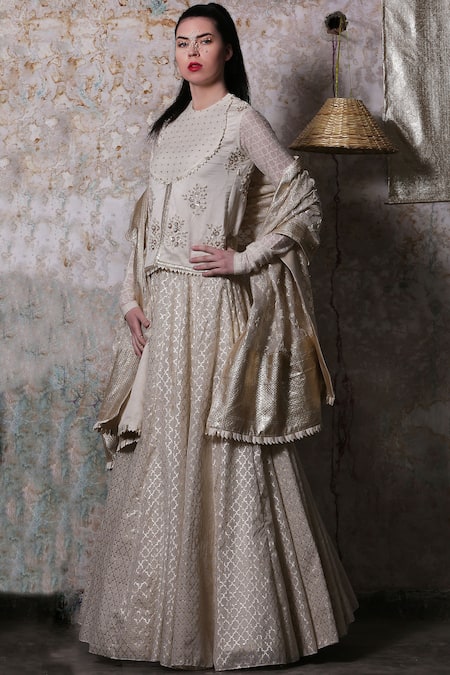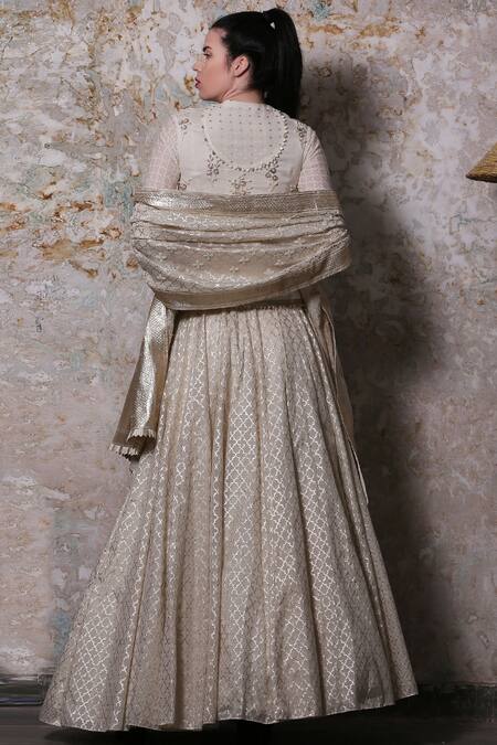 Buy_Pooja Shroff_White Chanderi Lehenga Set_at_Aza_Fashions