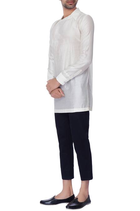 Off-white chanderi collar shirt with long sleeves.