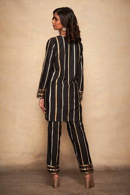 Black pant in pure chanderi silk base, pencil silhouette with gota embellishments.