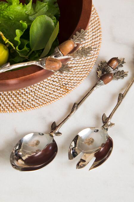Special feature: All our products are 100% food safe, Product Finish: Brown & Nickel, Dimensions: L x W each (in inches): 12 x 2.5, Weig H (gms): 384, Note: Only the spoon & fork salad servers shown in the image is being sold