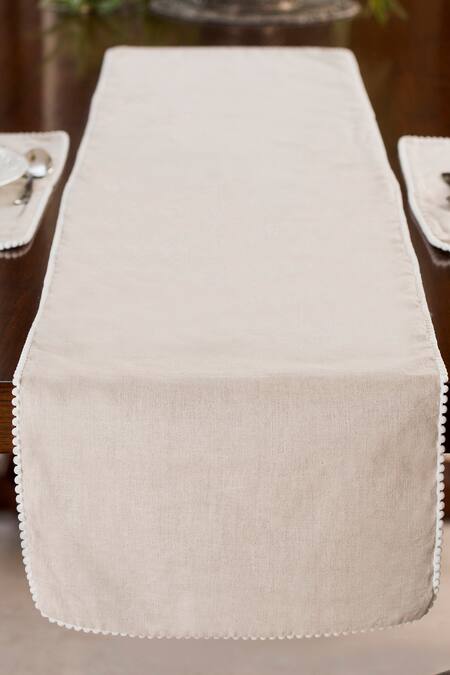 Beige Cotton Embroidery Chloe Rectangle Shaped Runner