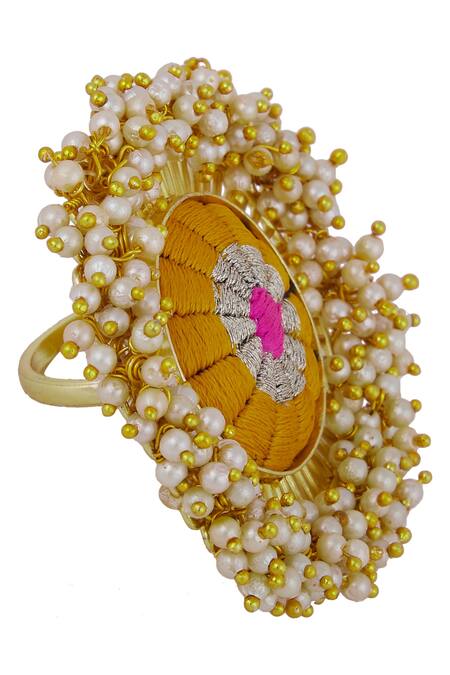 Buy_Bauble Bazaar_Gold Plated Pearl Circular Bead Ring_at_Aza_Fashions