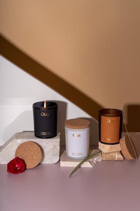 Aroma:, Night Bloom: Damask Rose & Vanilla, Morning Bliss: Jasmine & Lemongrass, Sunset Serenity: Lavender & Cedarwood, Size L x B x H (inch): 25 x 26 x 21, Weight (kgs): 2, Wax (gms): 200, Burning Time (Hrs): 40, Note: Reusable container with lid, Note: Only the 3 scented candles are being sold