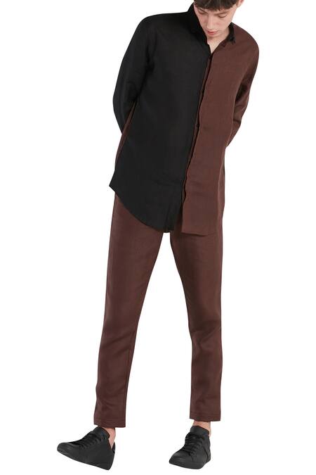 Son Of A Noble Snob_Black Linen Contrast Panel Shirt_Online_at_Aza_Fashions