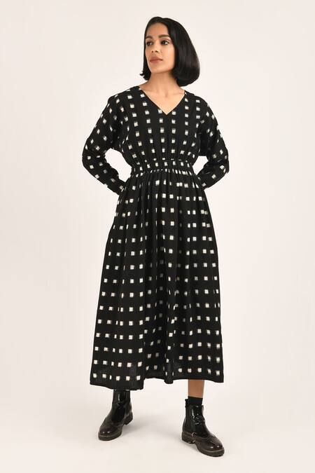 Black Cotton Coorg V Neck Dress