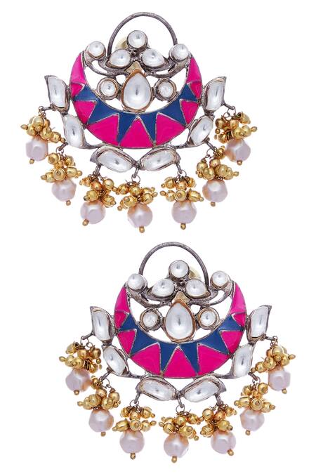 Enamel work, Kundan & baby pearls, Light weighted, Screw back closure