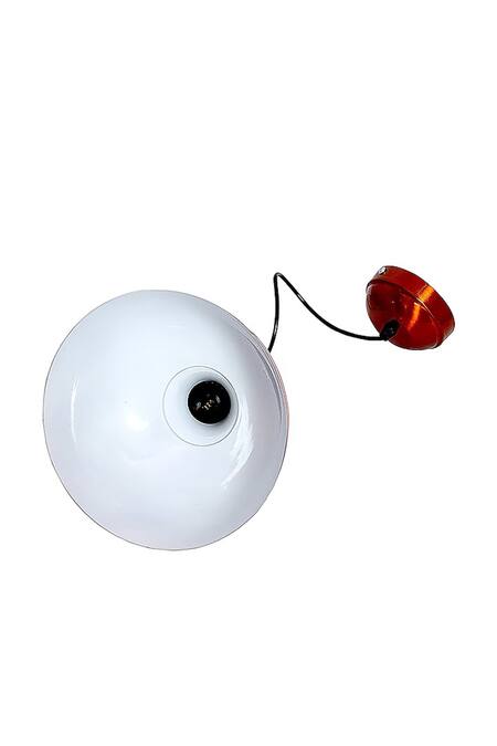 Copper ceiling lamp with a circular shape and copper finish.