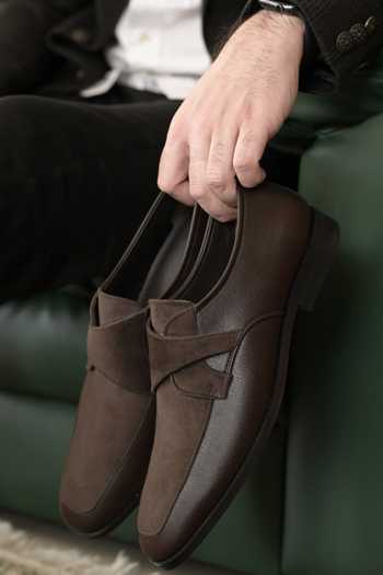 Brown Velvet And Faux Leather Loafers