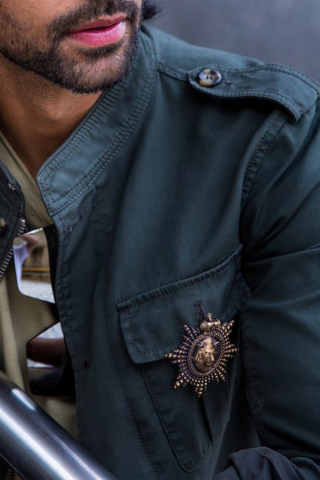 Buy_Cosa Nostraa_Gold Metal Antique Carved Lion Head Brooch_at_Aza_Fashions